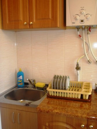 В зале двуспальный диван – кровать и два кресла – кровати, в спальне – две односпальные кровати, балкон - вид на море. Душевая кабинка и санузел совмещены, стиральная машина. Кухня с посудой, холодильник, телевизор. Горячая вода – колонка. До пляжа – 5 минут ходьбы. Рядом рынок, магазины.